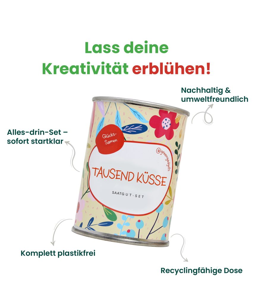 Die iGreen Glückwunsch-Blumen in der Dose verwandeln jedes Ereignis in einen besonderen Moment. Ob Geburtstag, Ruhestand oder ein Dankeschön für einen lieben Menschen – diese originellen Microgärten sind das ideale Geschenk. In jeder Dose findest du alles, was du brauchst, um kleine, bunte Wildblumen zu kultivieren, ein Symbol für Wachstum und Dankbarkeit. Ihr Design, das für verschiedene Anlässe personalisiert ist, macht sie perfekt, um jeden mit einem ökologischen und kreativen Gedanken zu überraschen. Die Glückwunsch-Microgärten sind nicht nur Gegenstände, sondern eine Erfahrung, die mit der Zeit weiterwächst – genau wie die Beziehungen und Erinnerungen, die sie repräsentieren.